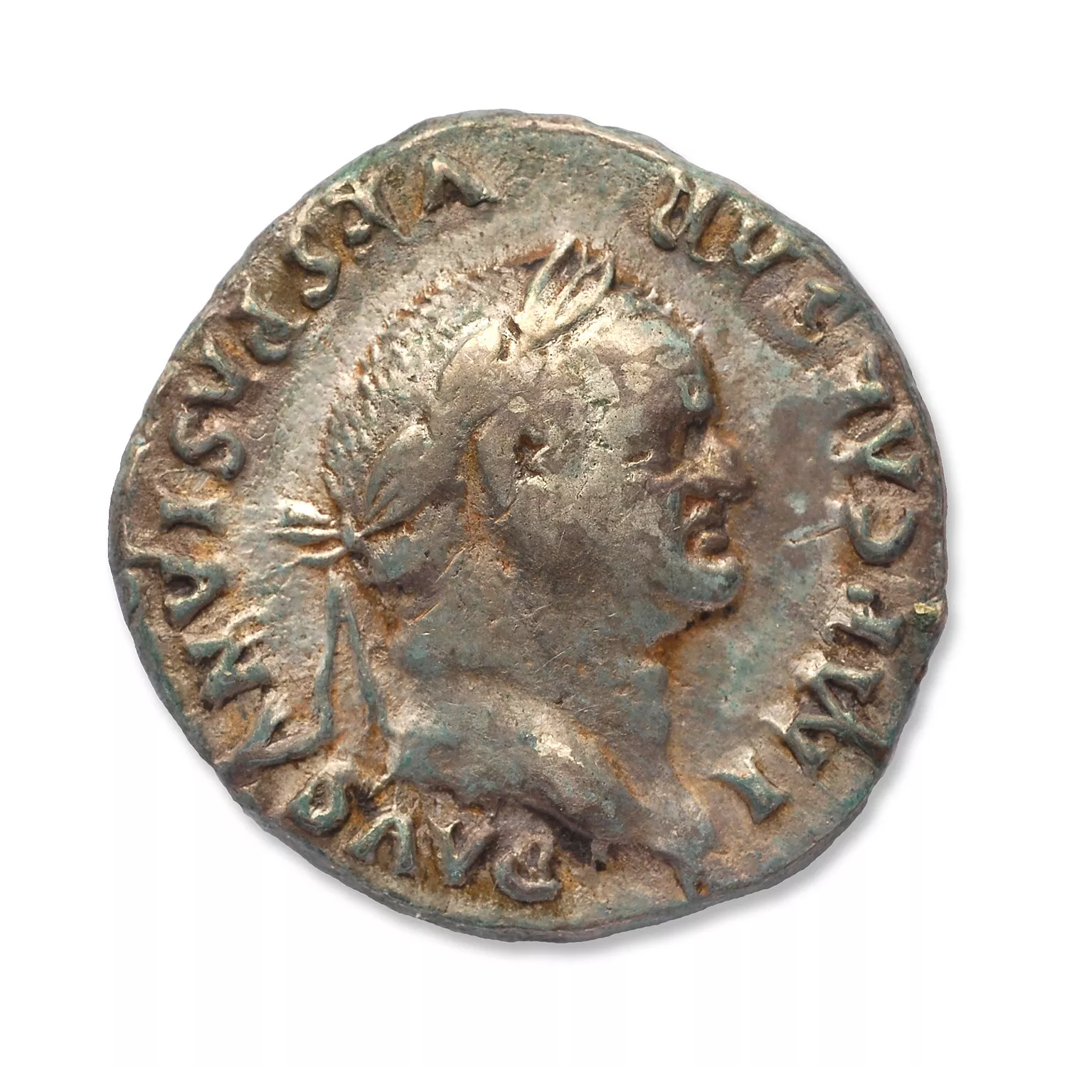 Tête laurée de Vespasien à droite