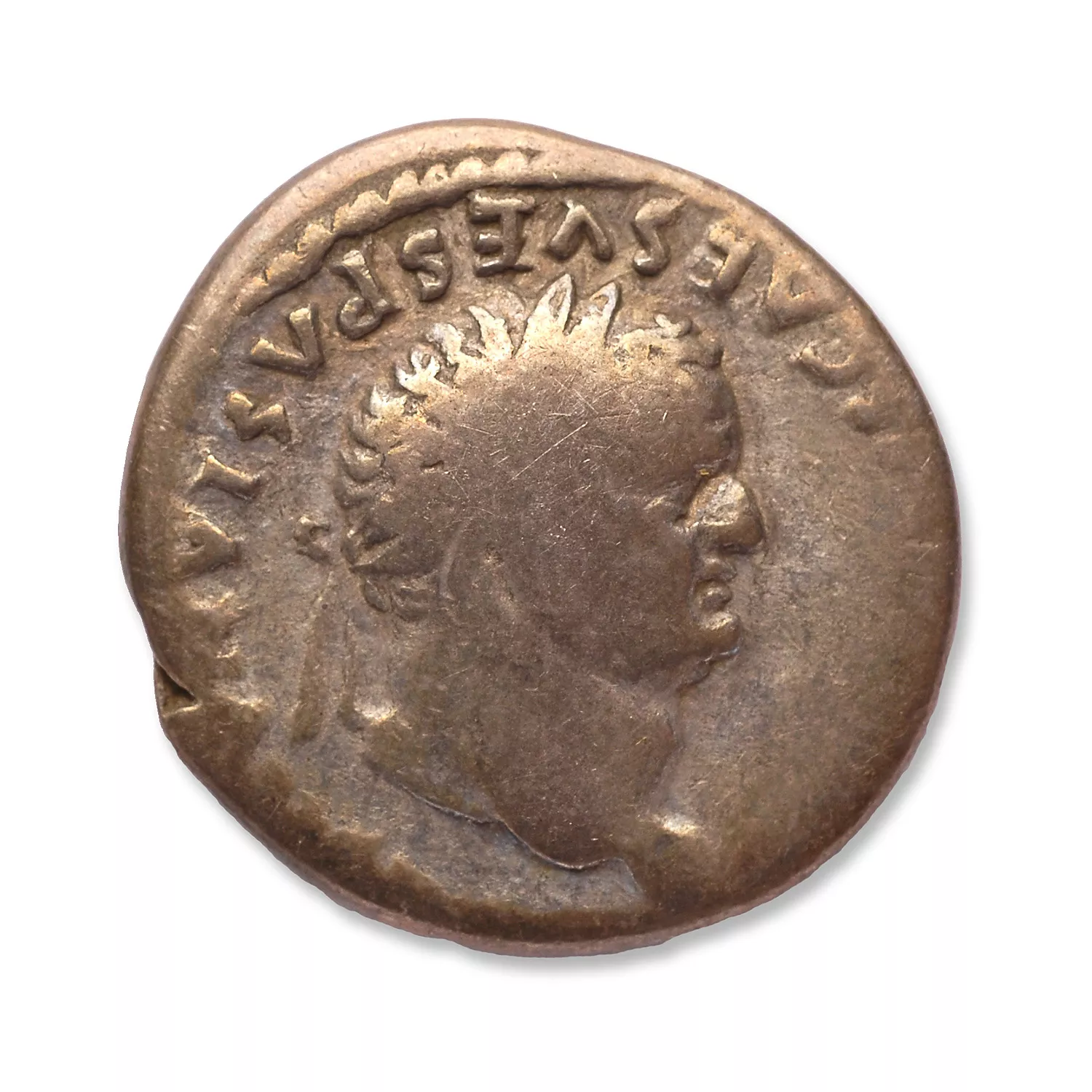 Tête laurée de Vespasien à droite