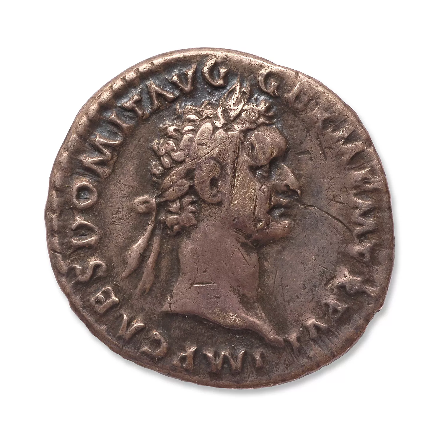 Tête laurée de Domitien à droite