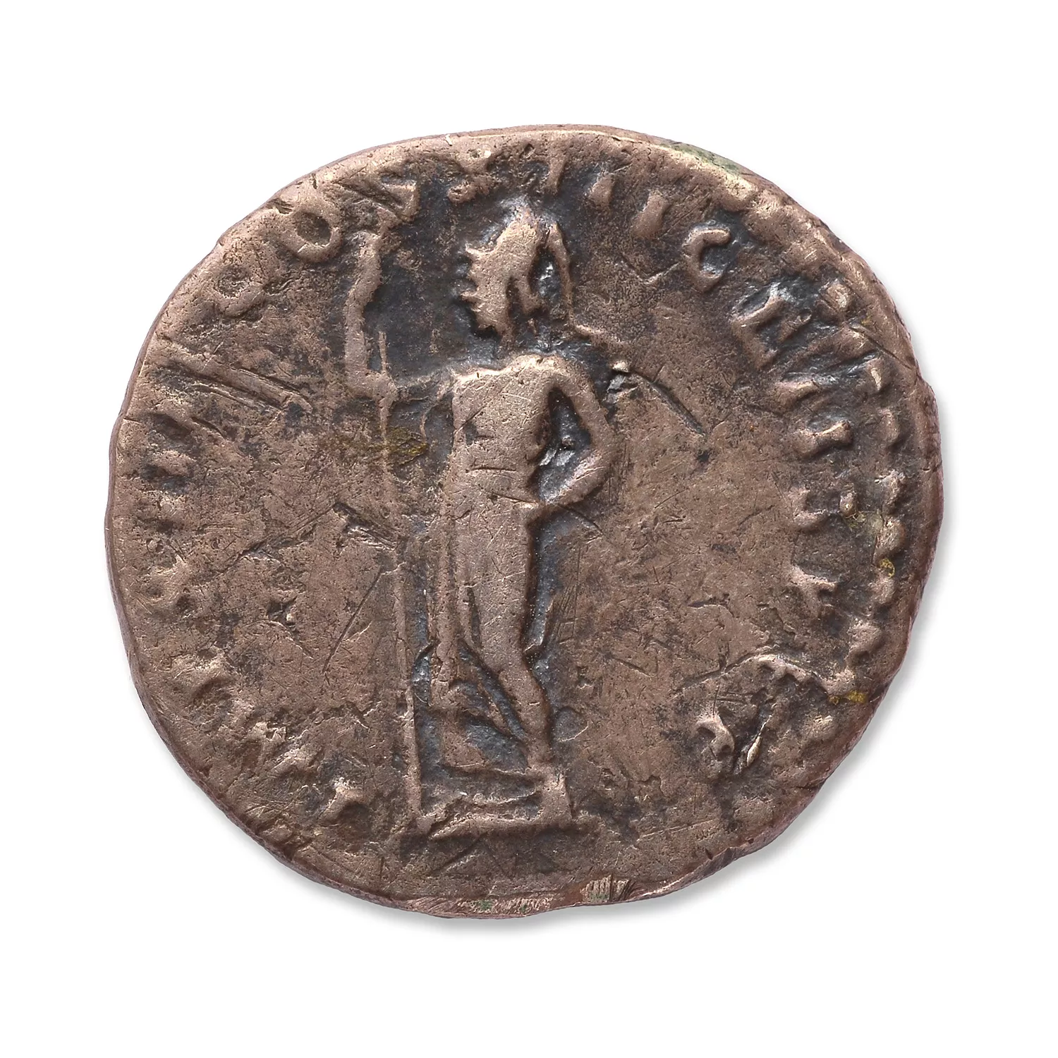 Minerve debout à gauche, tenant une lance verticale de la main droite