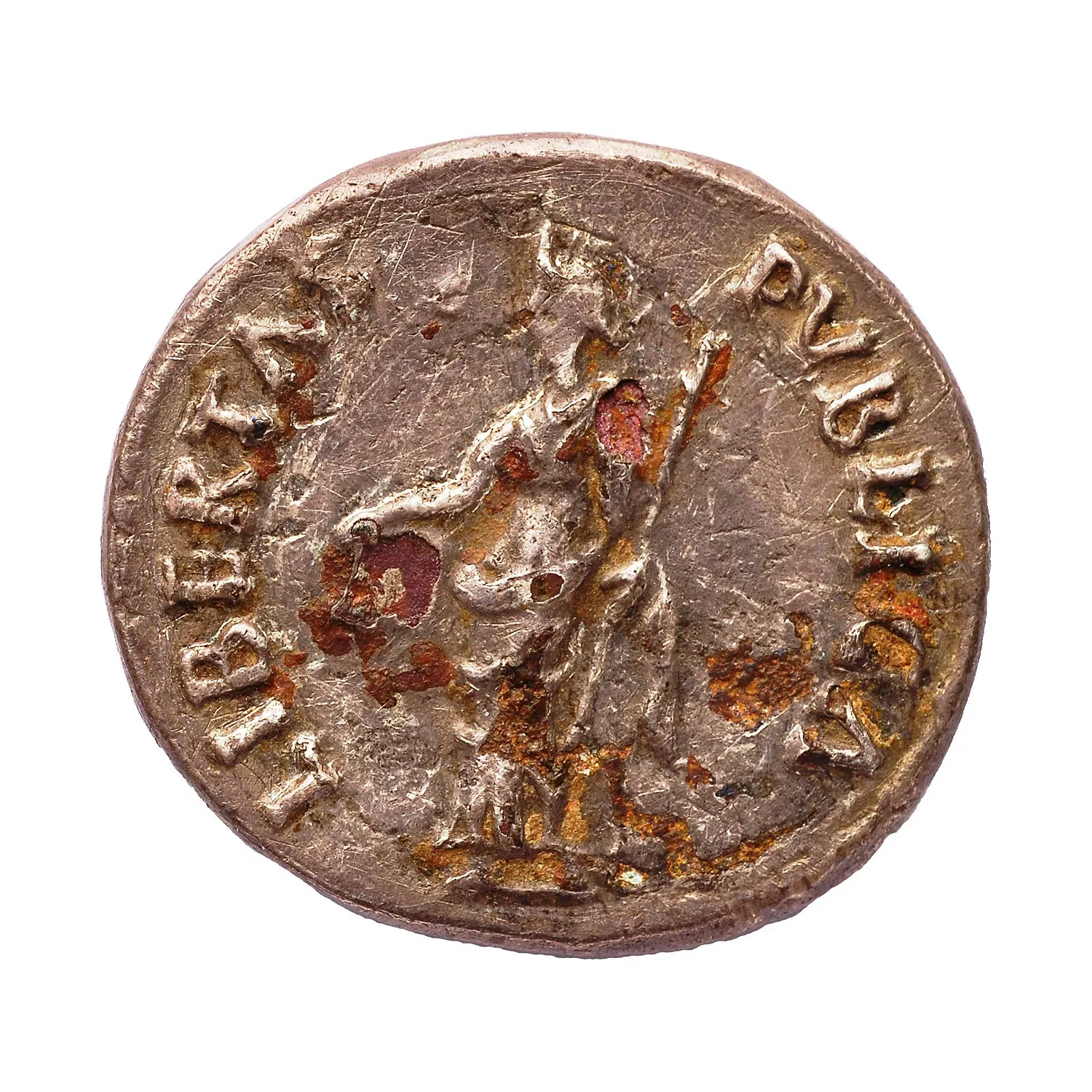 Libertas debout à gauche, tenant le pileus et un sceptre transversal