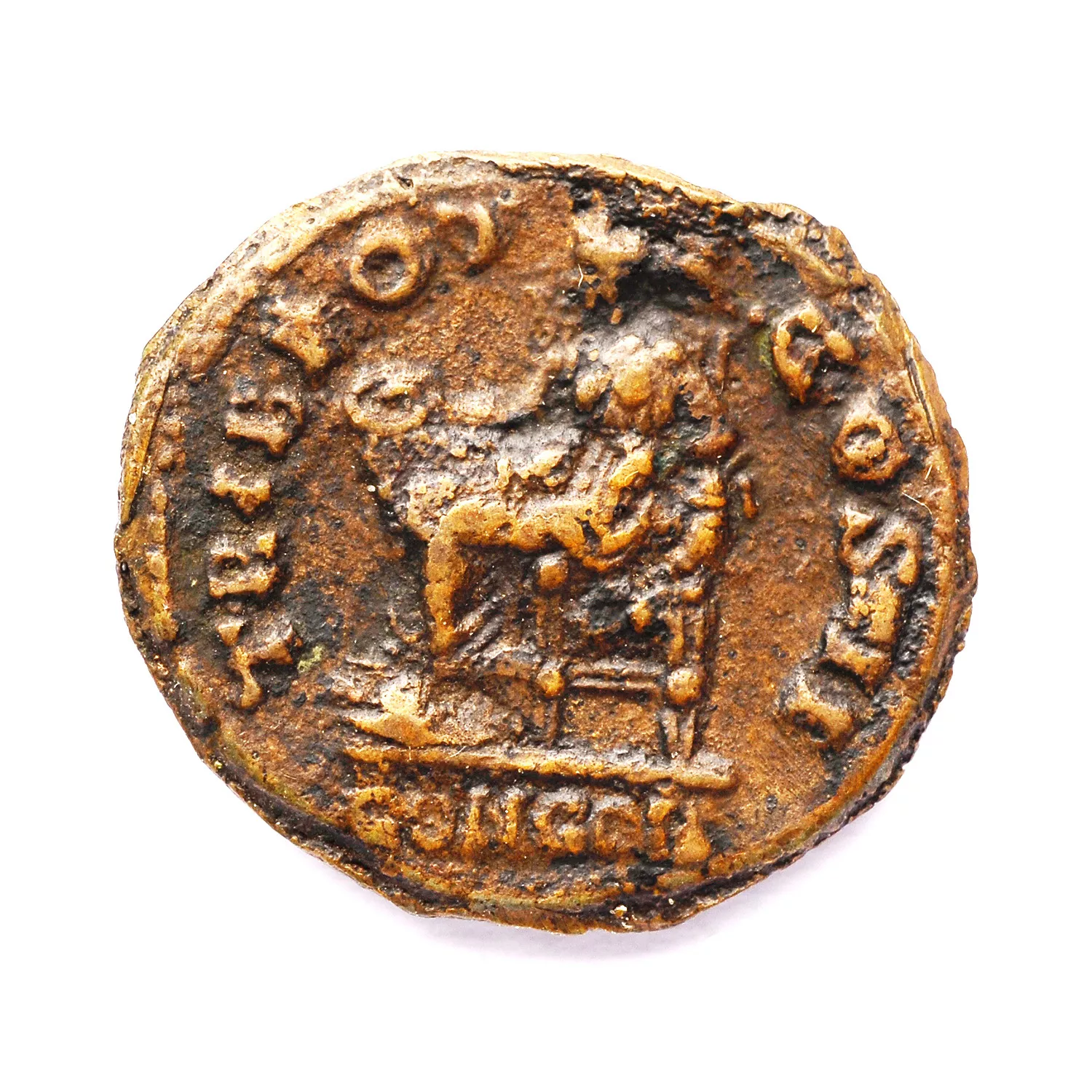 Concordia assise à gauche, tenant une patère et s'appuyant sur une corne d'abondance