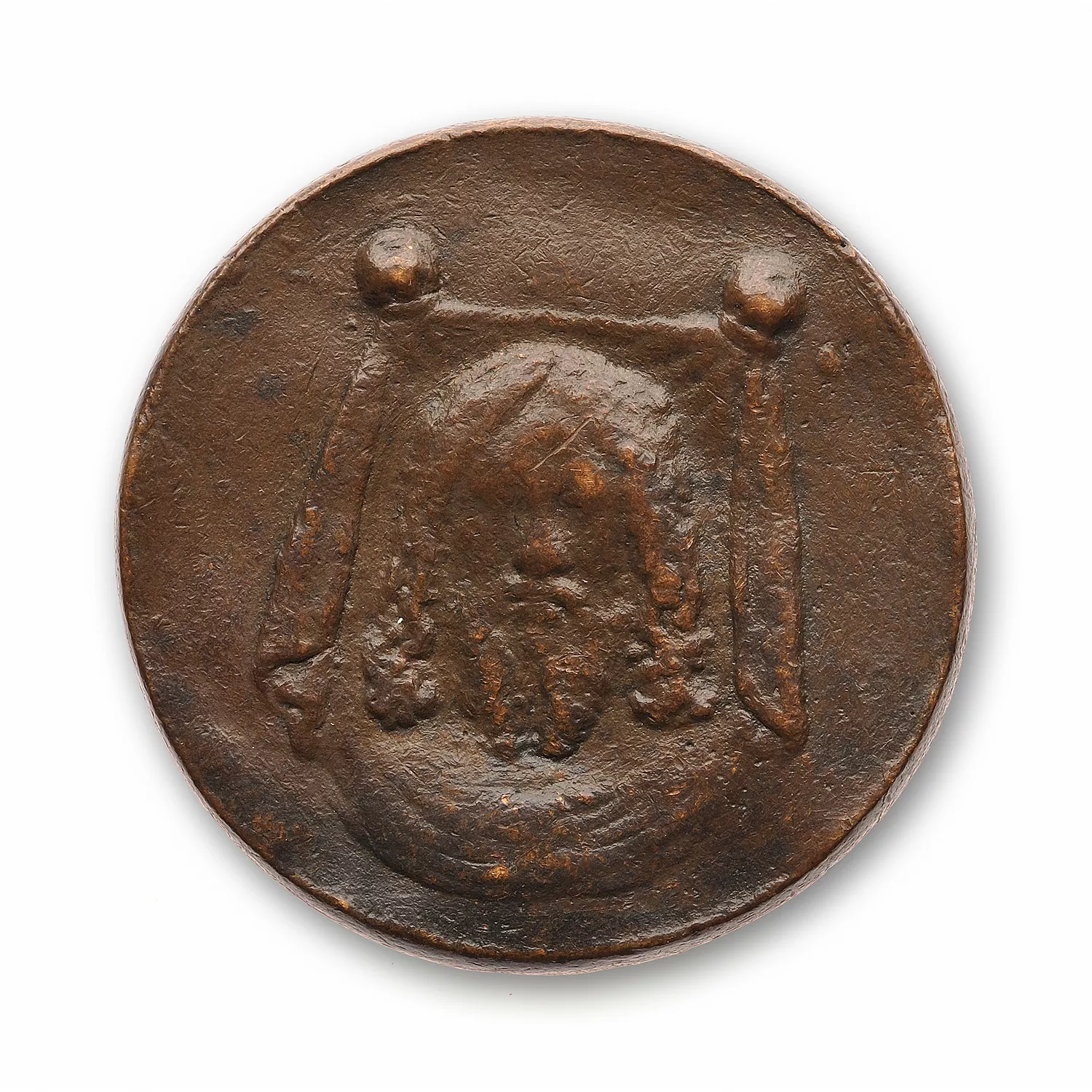 Tête nue de Néron à droite, dessous globe