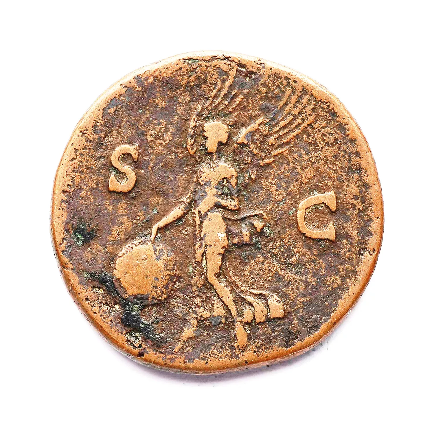 Victoire volant à gauche, tenant un bouclier inscrit SPQR