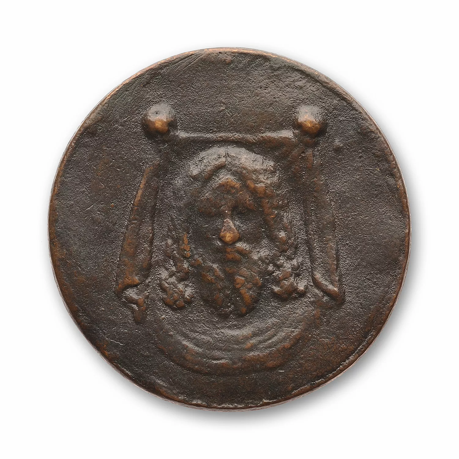 Virtus debout à droite, tenant une lance renversée et le parazonium