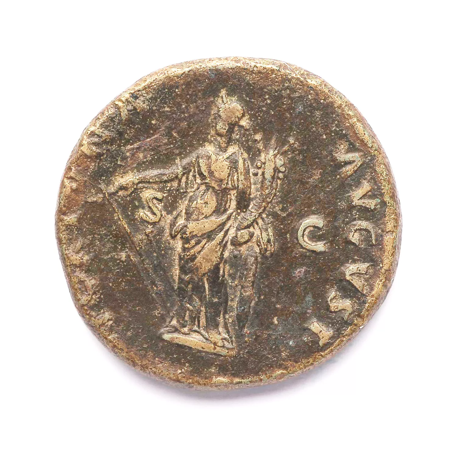 Fortuna debout à gauche, tenant un gouvernail et une corne d'abondance
