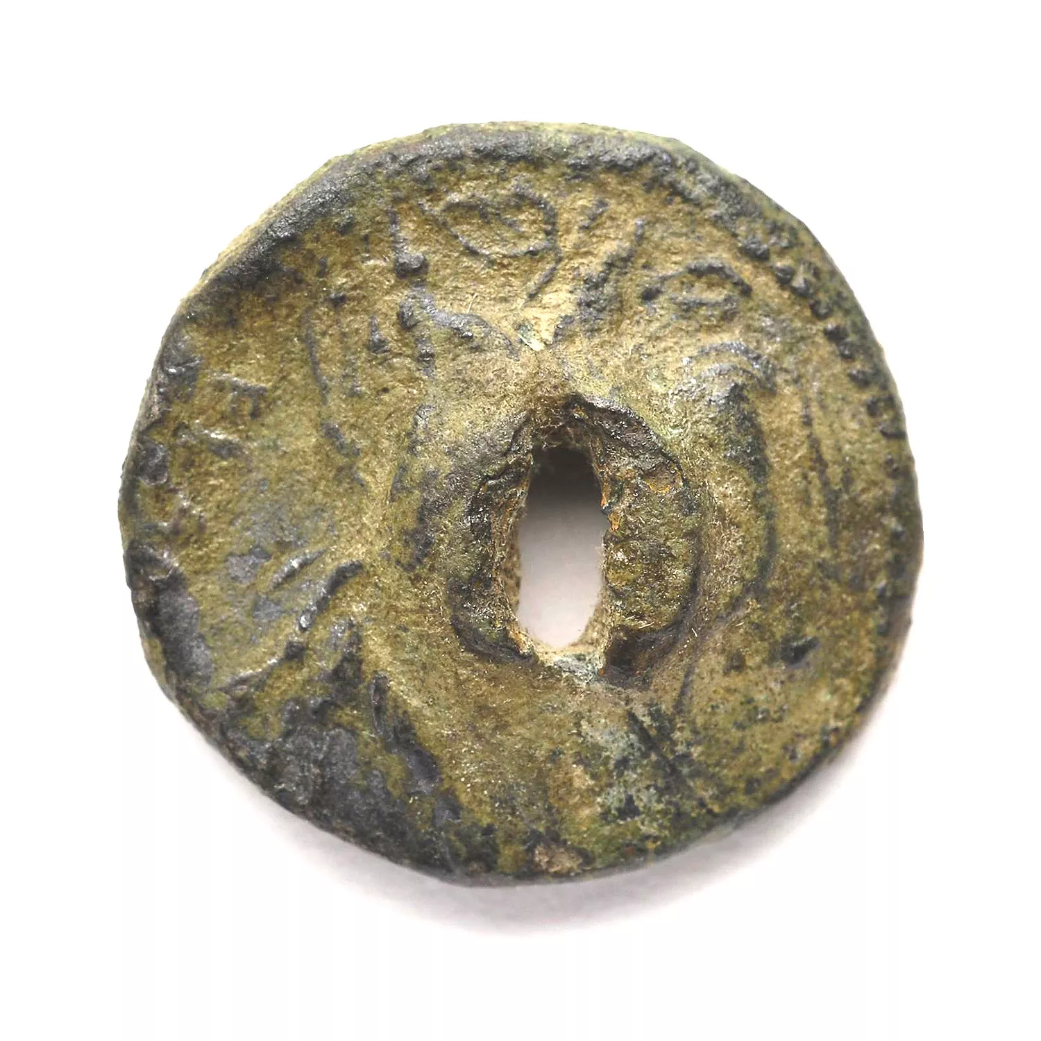 Denier défourré ? ; importante perforation au centre