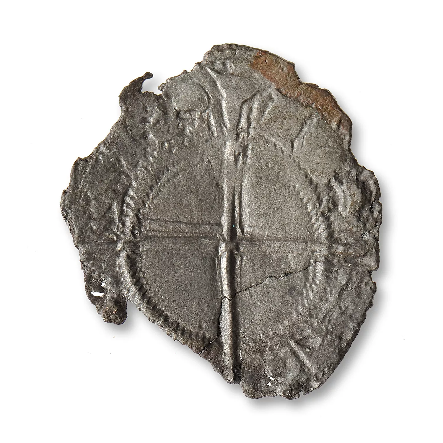 Croix coupant la légende