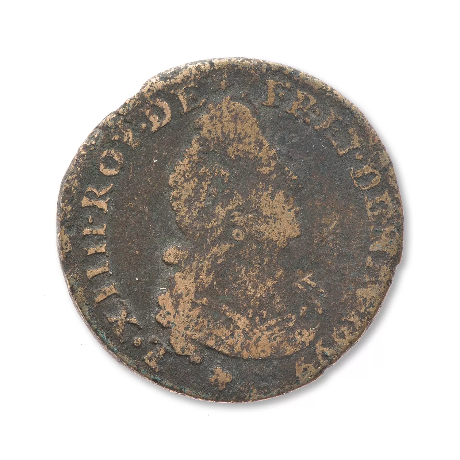 N surmonté d’une couronne de fer radiée à sept pointes, dans une couronne de laurier