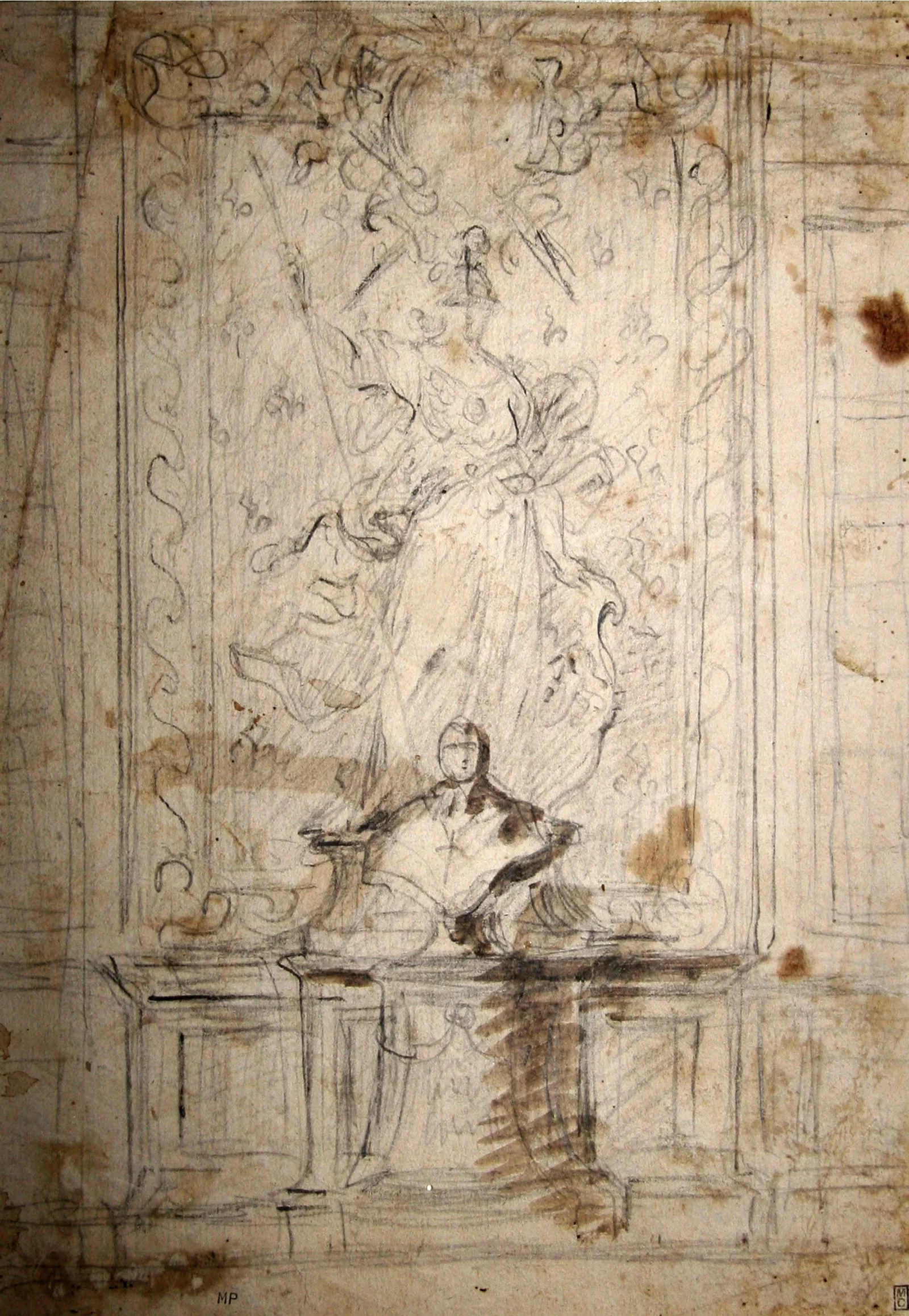 Ce dessin est le recto d'une étude menée par Francesco Furini, au verso se trouve un Nu masculin vu de droite