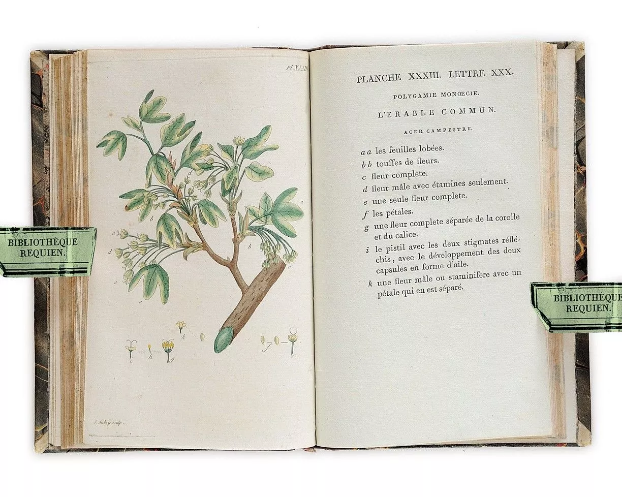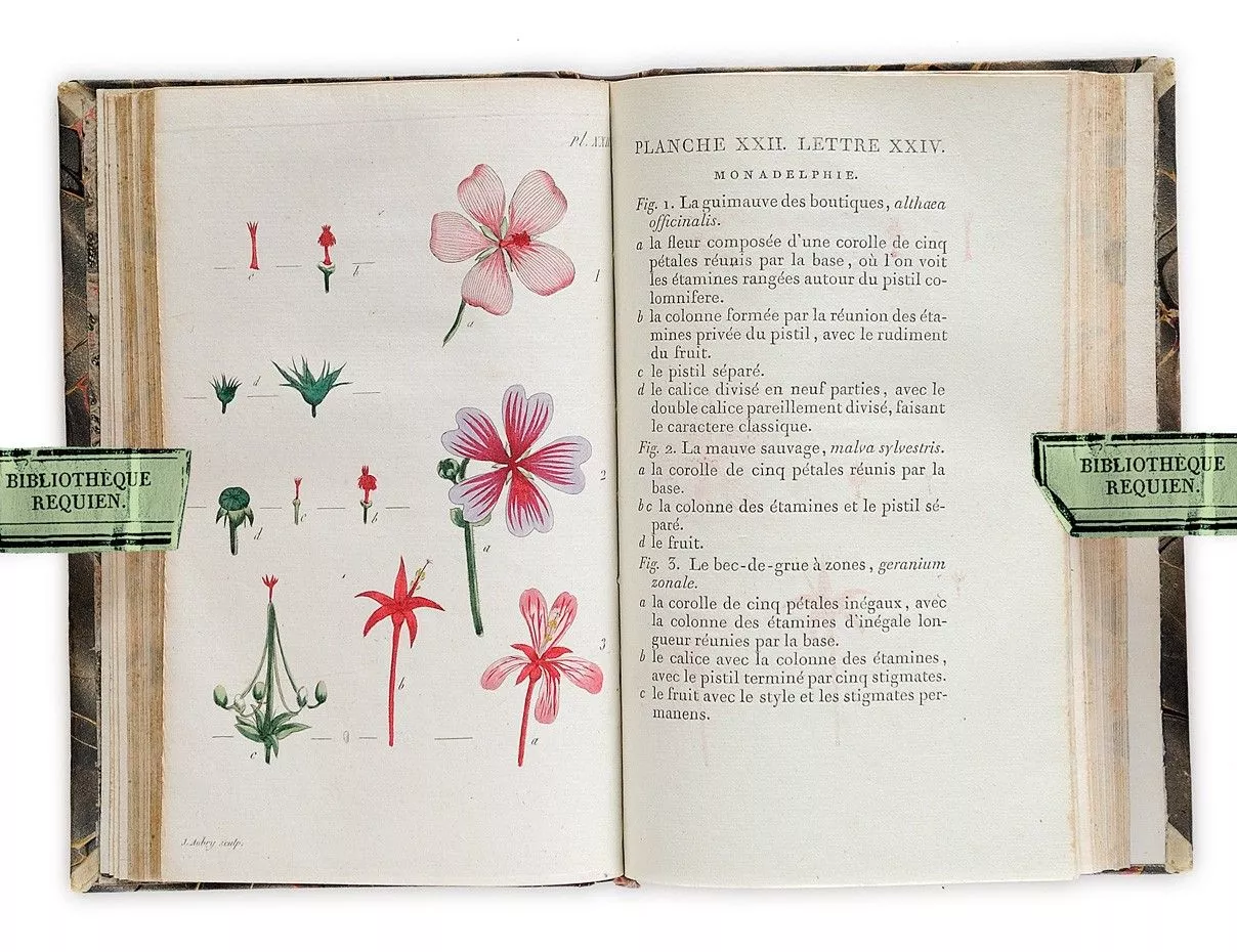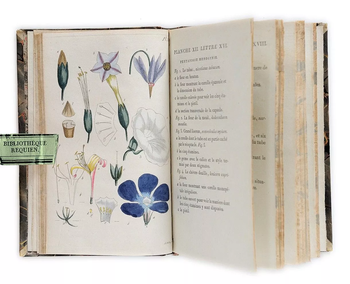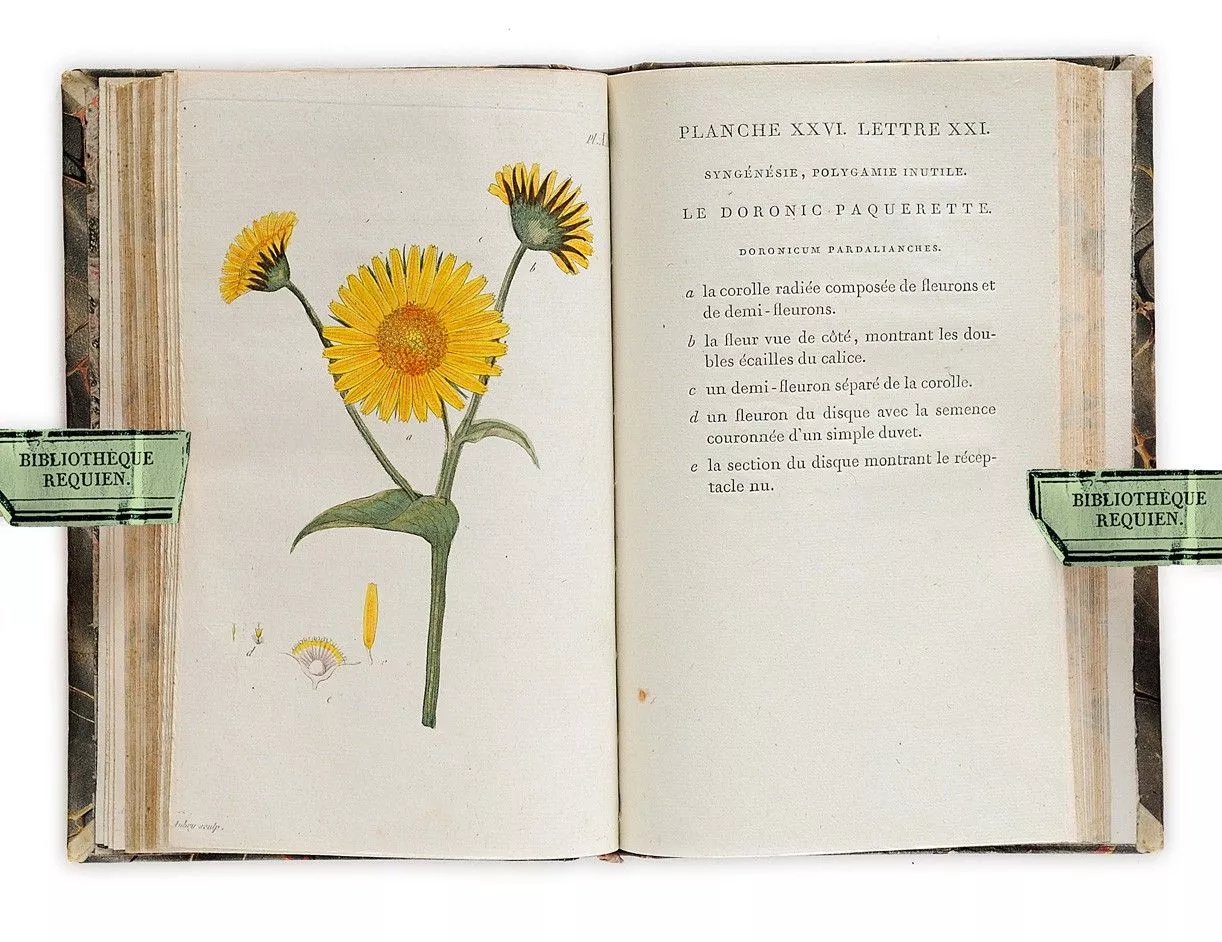 Rousseau, Jean-Jacques (1712-1778). Illustrations en couleurs. Rousseau découvrit tardivement la botanique, puis la délaissa pour copier des pages de musique ou écrire ses livres, avant d'y revenir vers 65 ans, car il préférait herboriser.