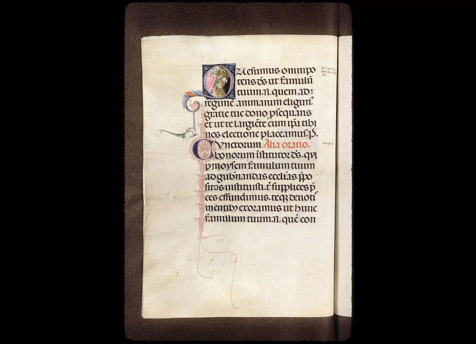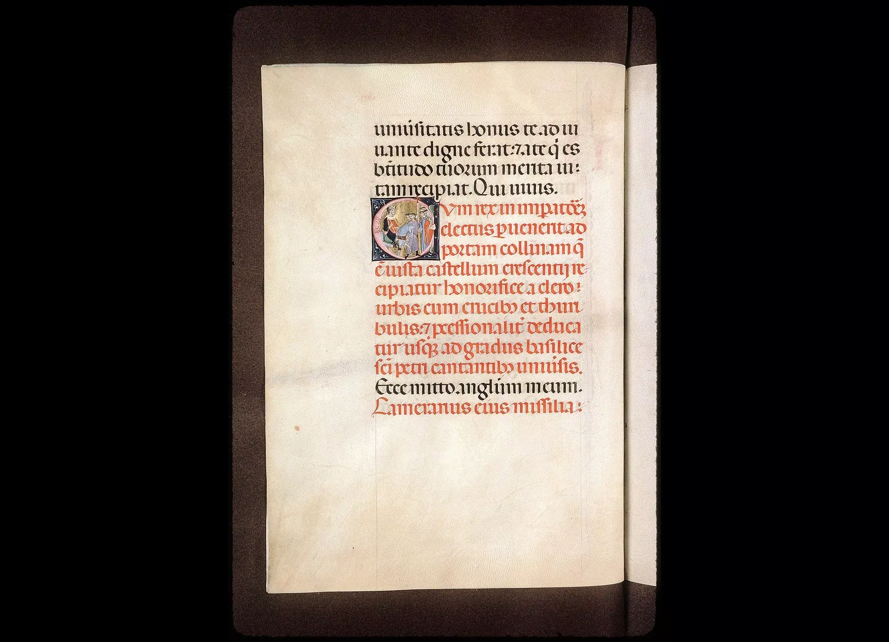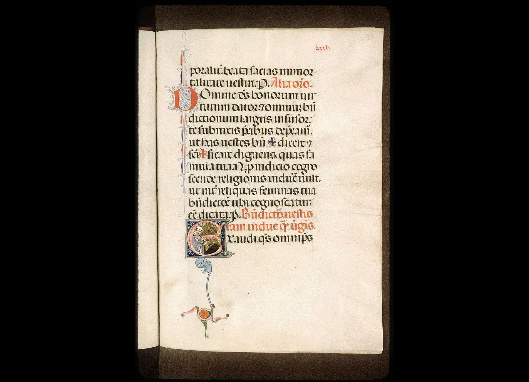 Commentaires de Labande. XIVe siècle. Vélin. 261 feuillets (manquent les fol. 55, 56, 200,204). 311 sur 239 millim. Les principales initiales en tête de l'Ordodes cérémonies sont miniaturées à la façon italienne; elles sont ornéesde personnages sur fond d'or et donnent la figuration des cérémonies ; les autres initiales, alternativement rouges et bleues, sont ornées de filigranesqui décorent la marge. Rel. bois, recouvert de basane, ornementsformés de petits médaillons, avec oiseaux et animaux. (Métropoled'Avignon.)