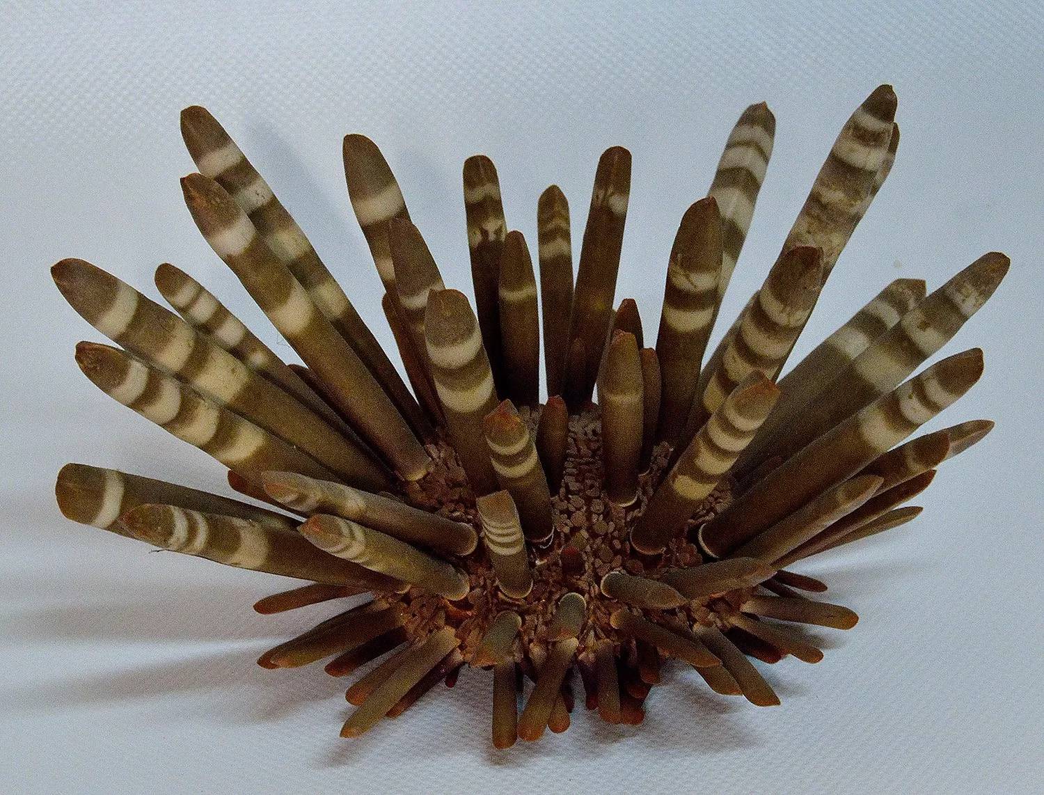L’oursin crayon (Heterocentrotus mamillatus) est un oursin tropical de la famille des Echinometridae, reconnaissable par ses piquants épais et colorés, qui peuvent atteindre jusqu'à 10 cm. Sa coquille, ou « test », mesure jusqu'à 8 cm de diamètre et peut avoir des couleurs variées, souvent vives comme le rouge ou l'orange. Il vit dans les eaux tropicales du bassin indo-pacifique, notamment à Hawaii, et préfère les récifs coralliens à des profondeurs allant jusqu'à 25 m, bien qu'il soit plus commun dans les 8 premiers mètres.
