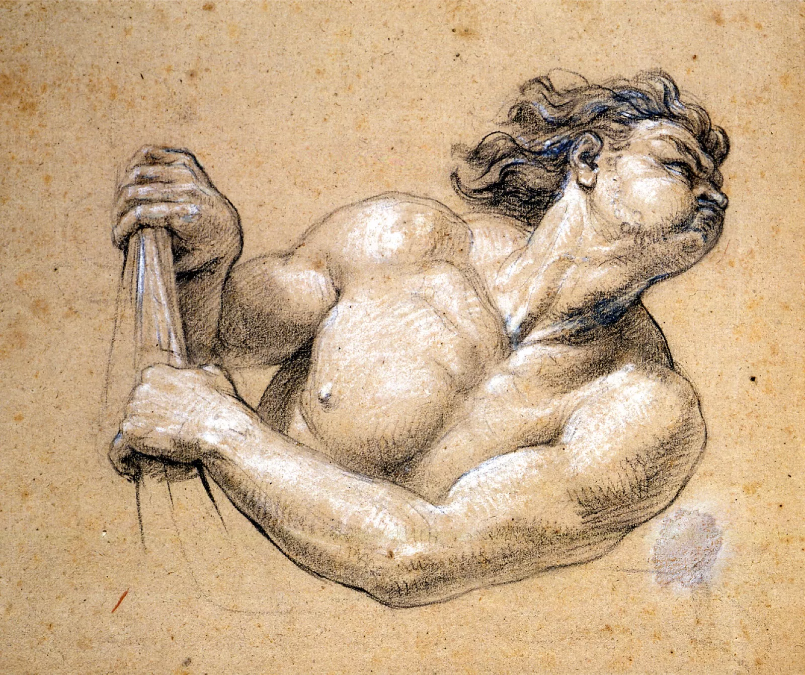 Pierre noire et rehauts de craie blanche sur papier collé en plein