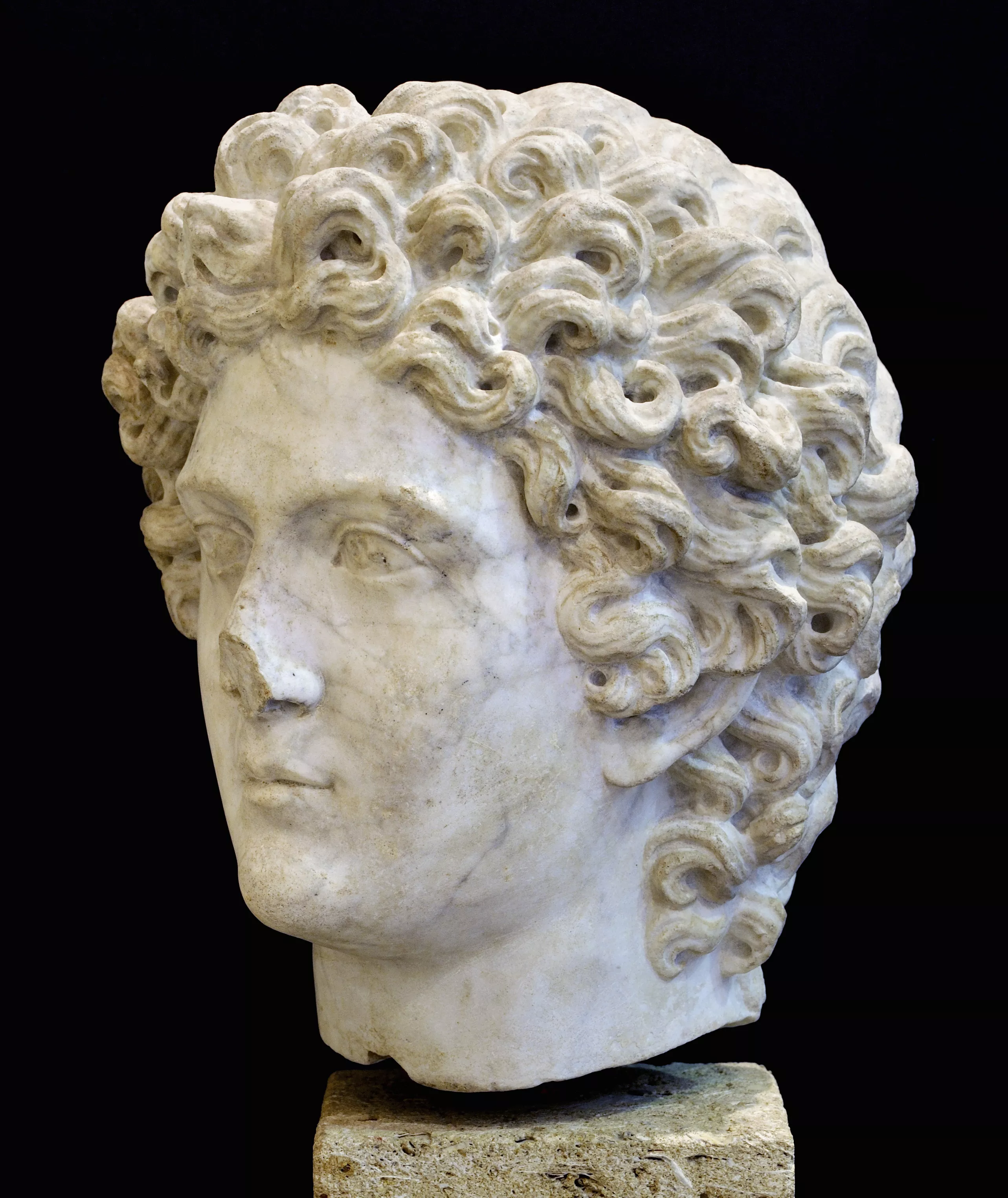 Tête masculine aux cheveux bouclés.