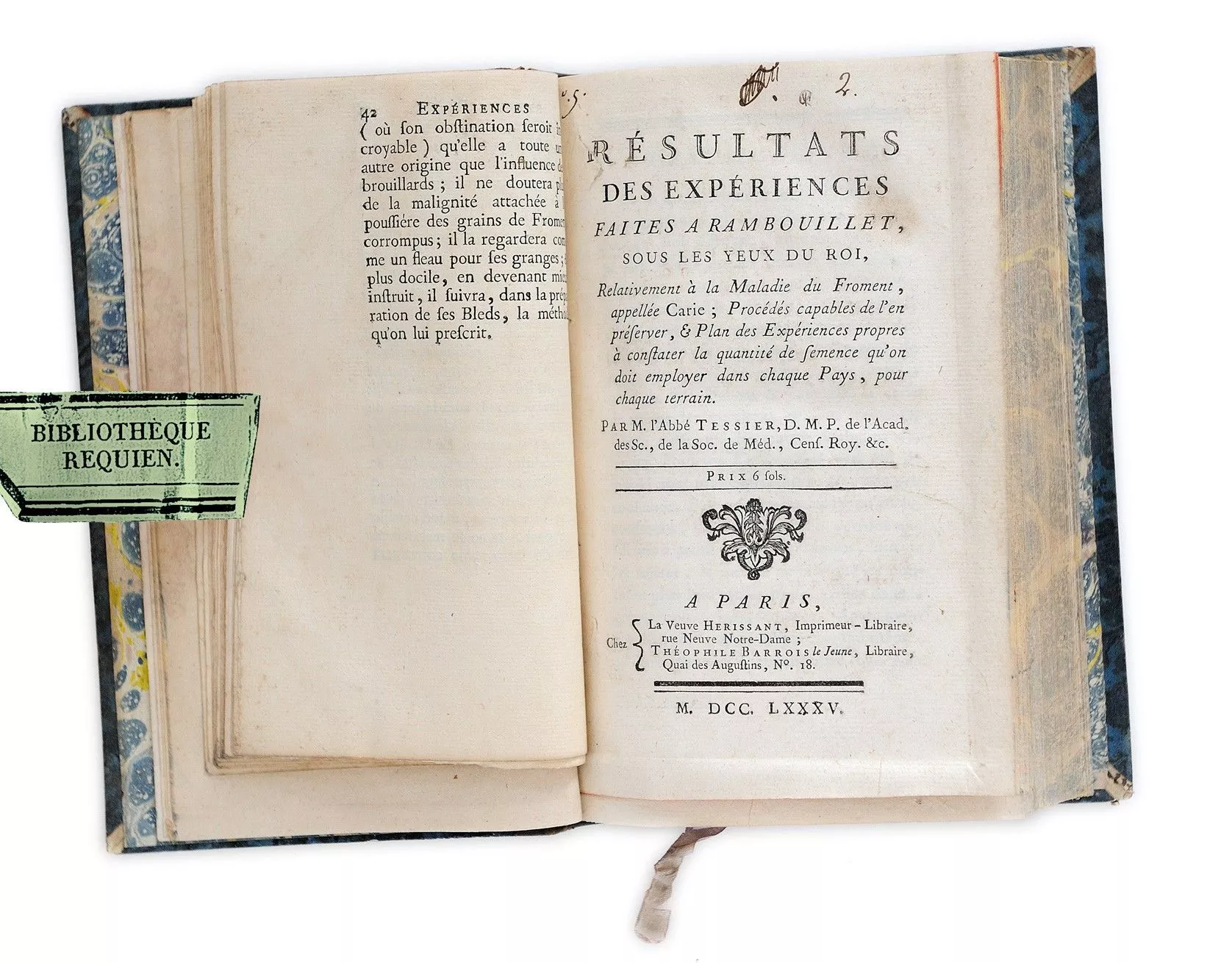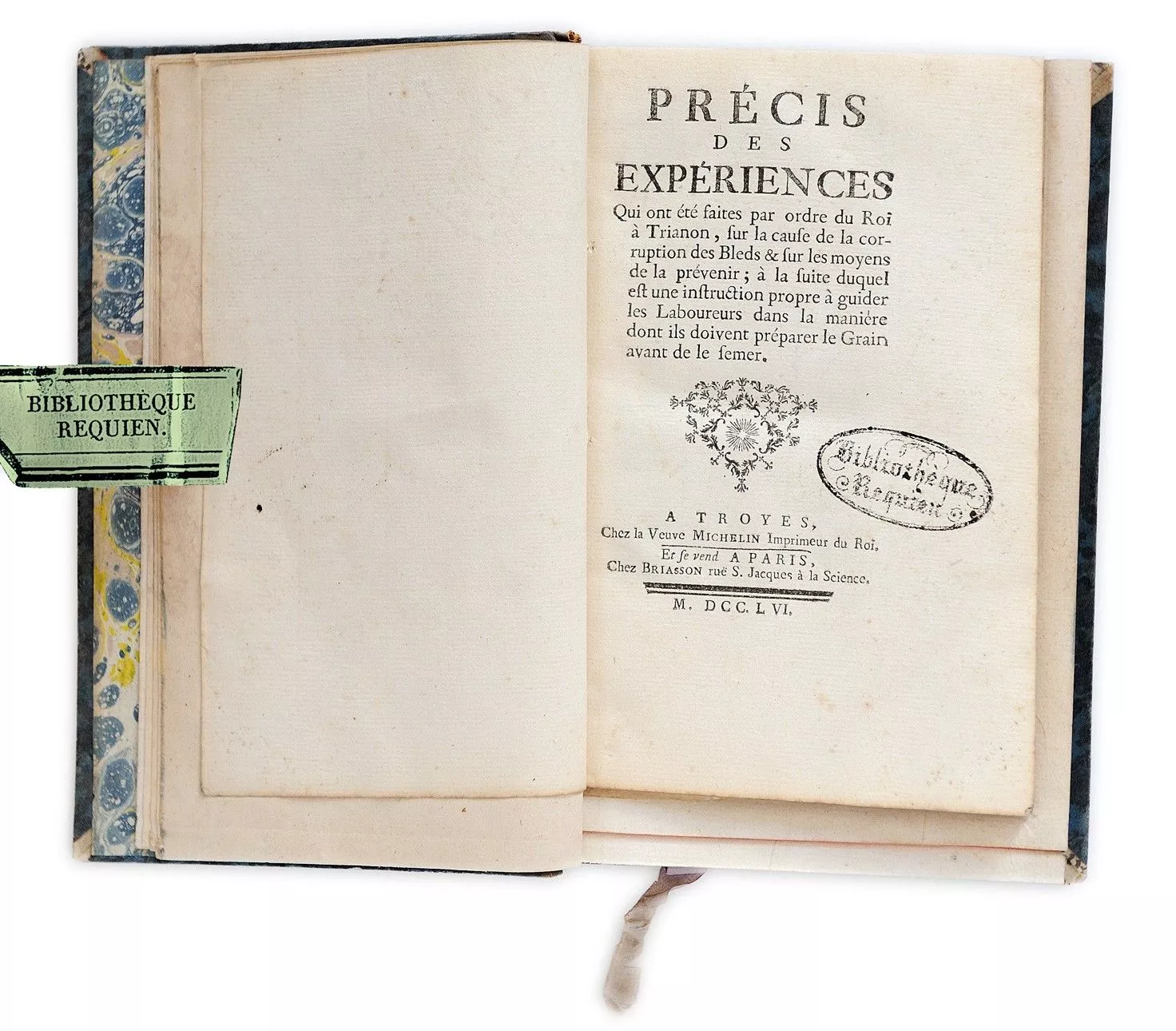 Titre complet : Précis des expériences qui ont été faites par ordre du roi à Trianon, sur la cause de la corruption des Bleds et sur les moyens de la prévenir ; à la suite duquel est une instruction propre à guider les laboureurs dans la manière dont ils doivent prépare