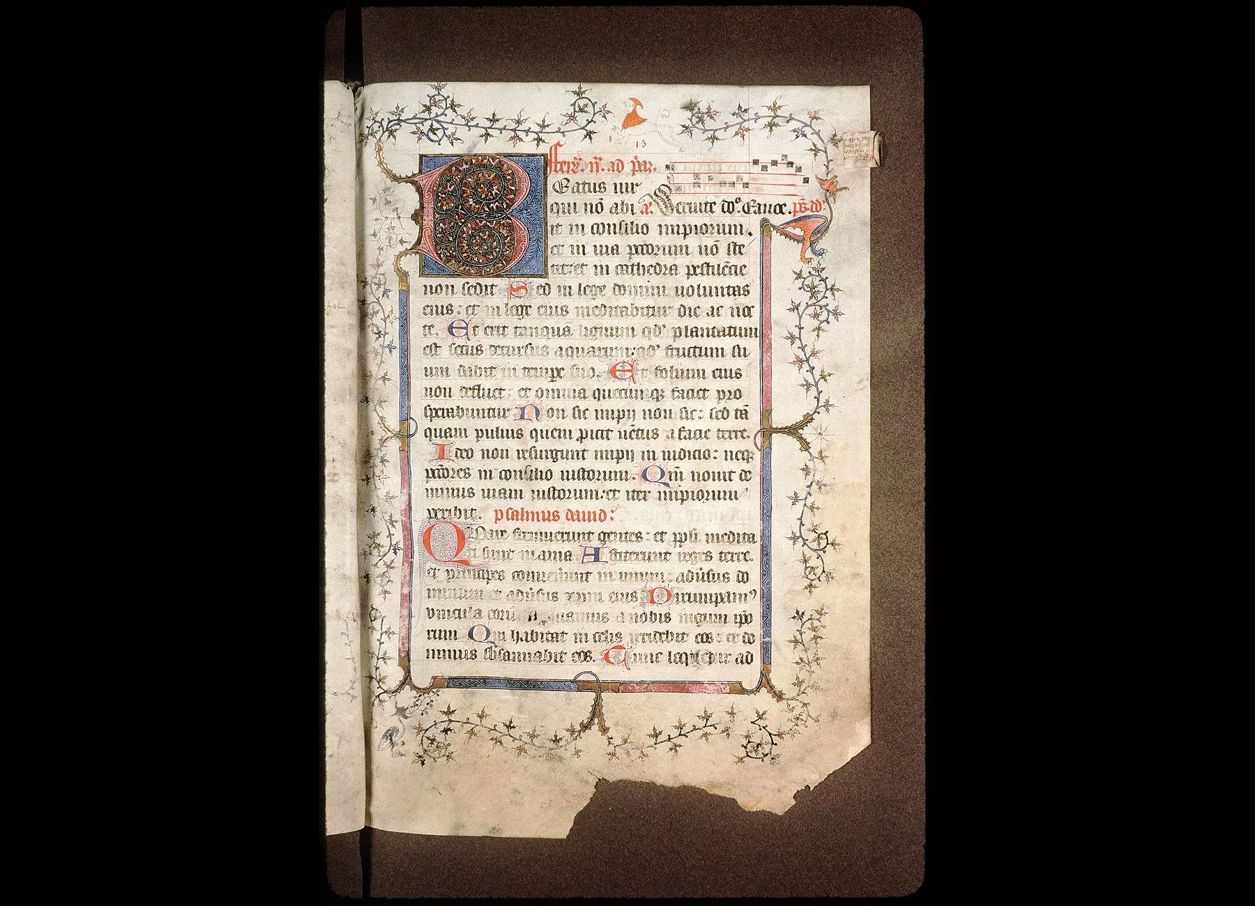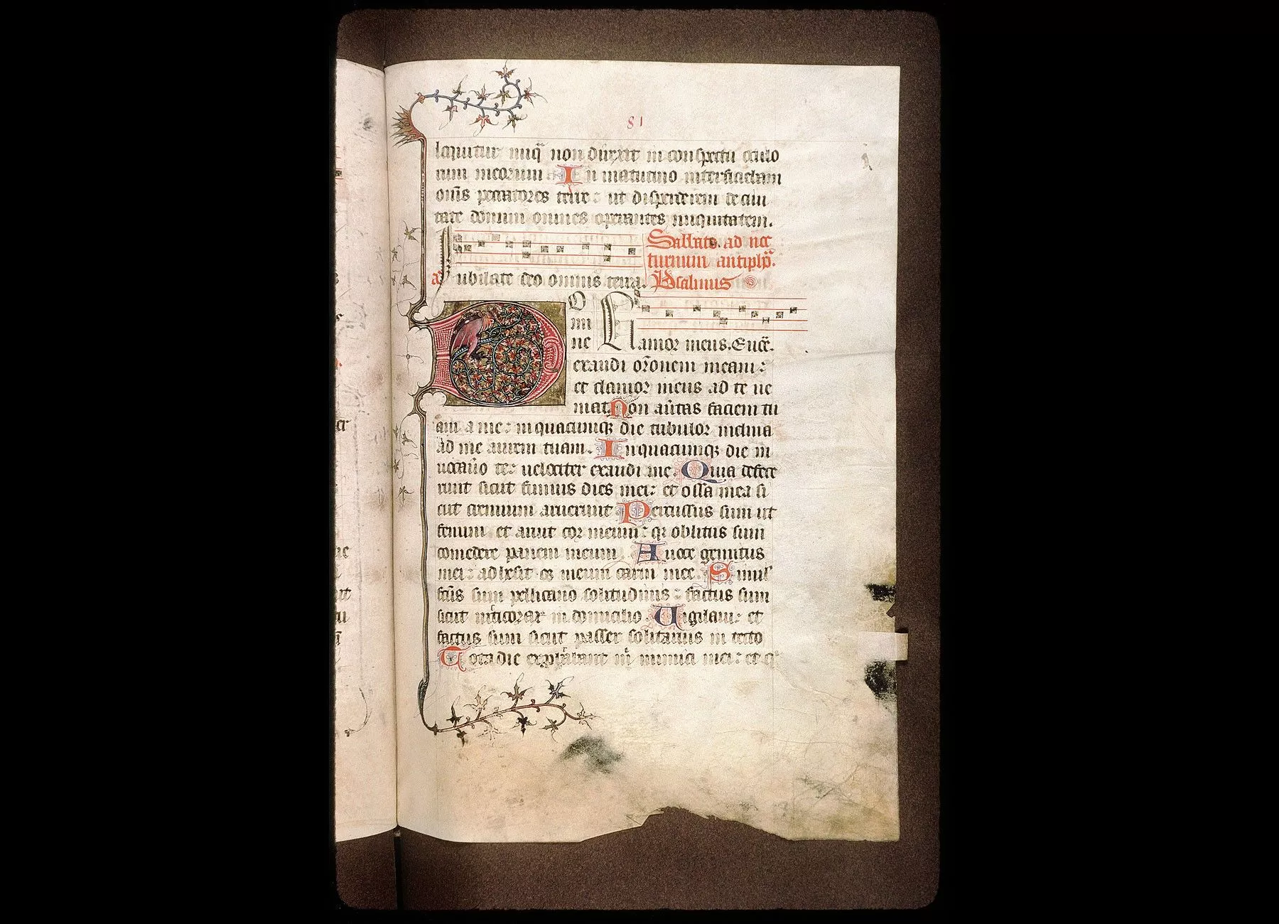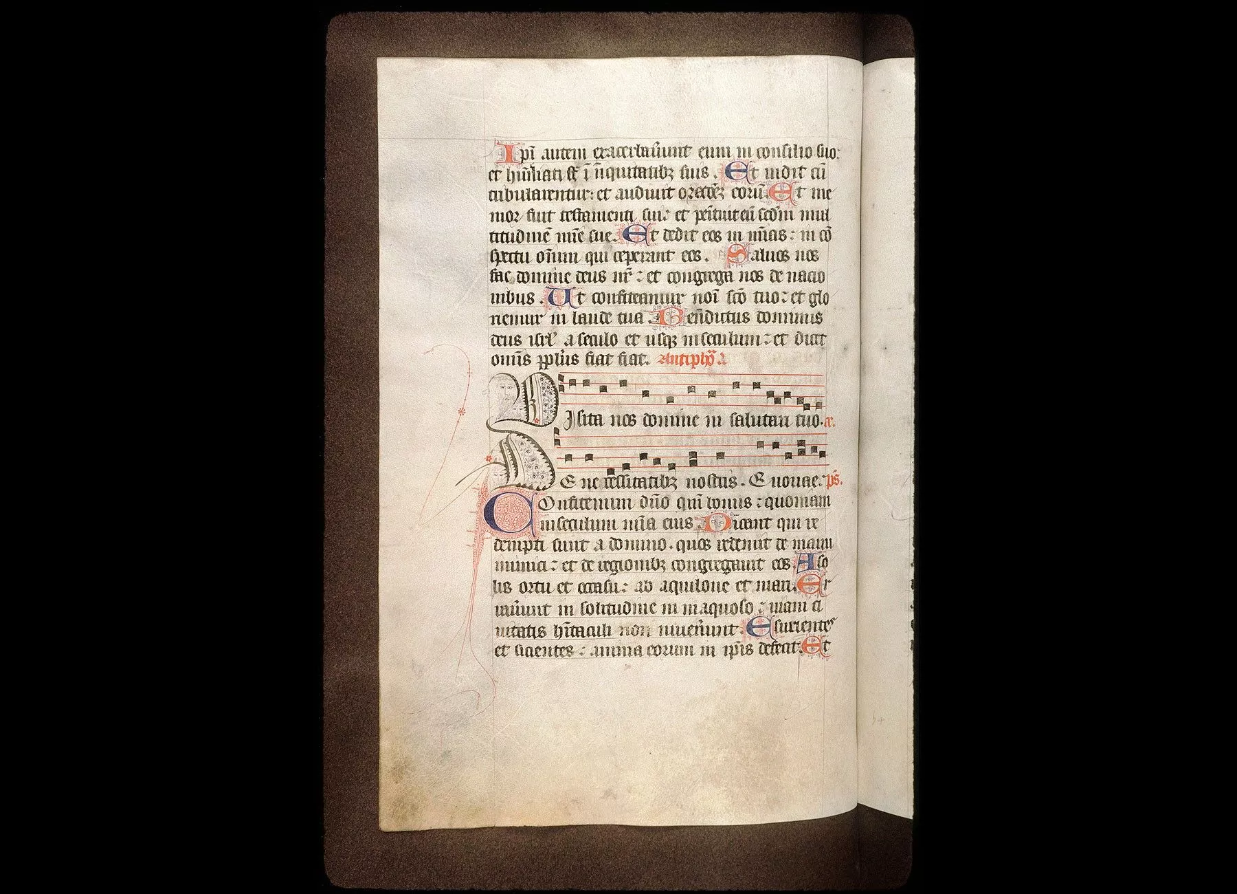 Fol. 13. Psautier divisé selon les heures canoniales, avec l'indication du commencement des antiennes notées
