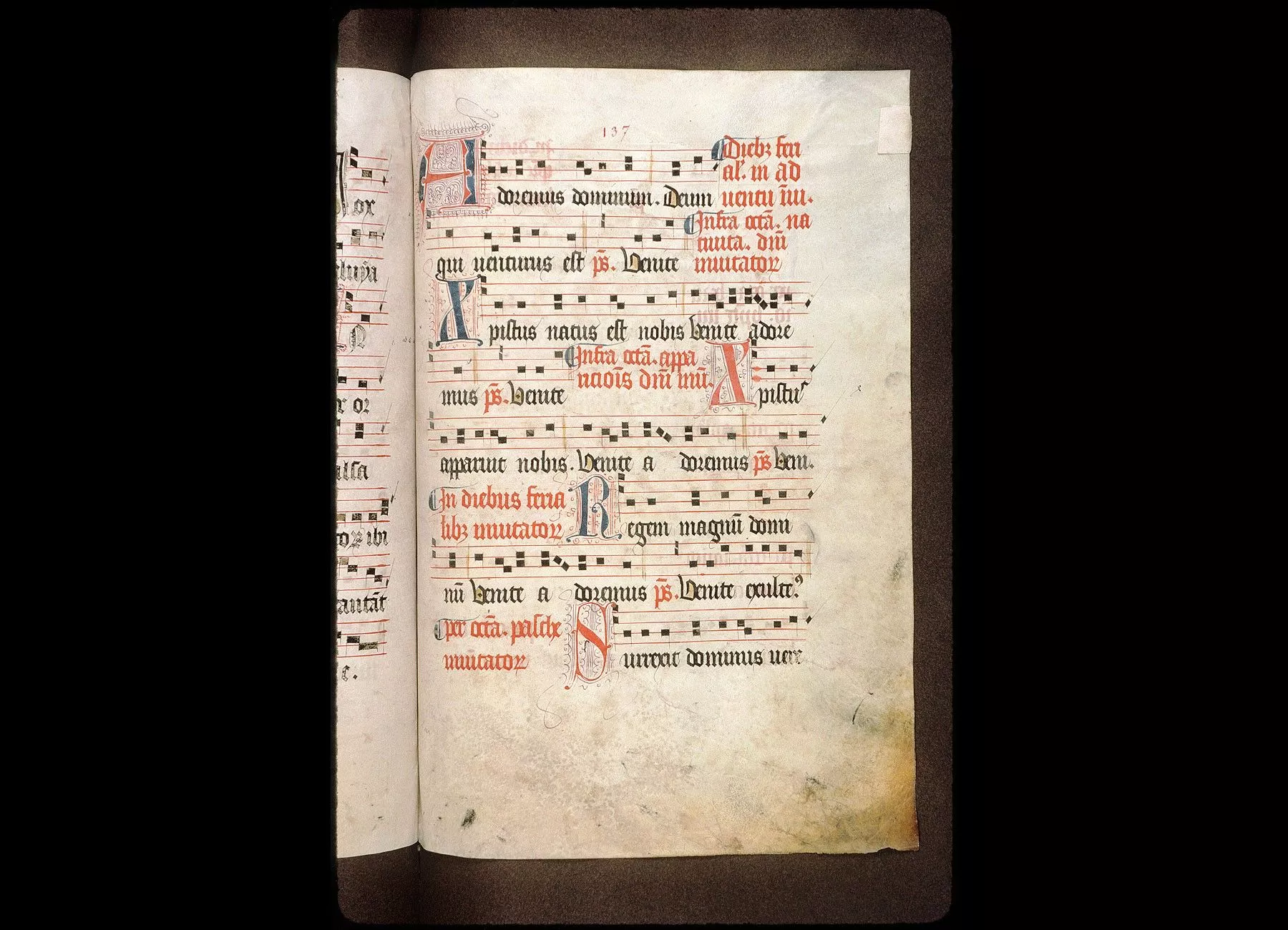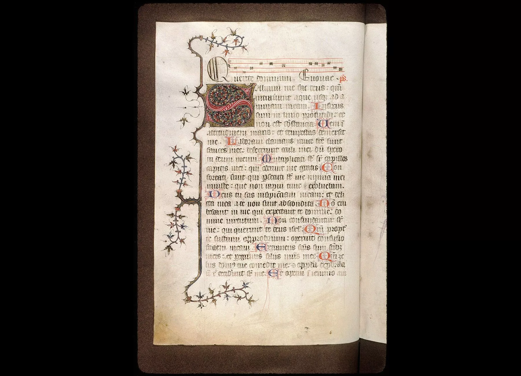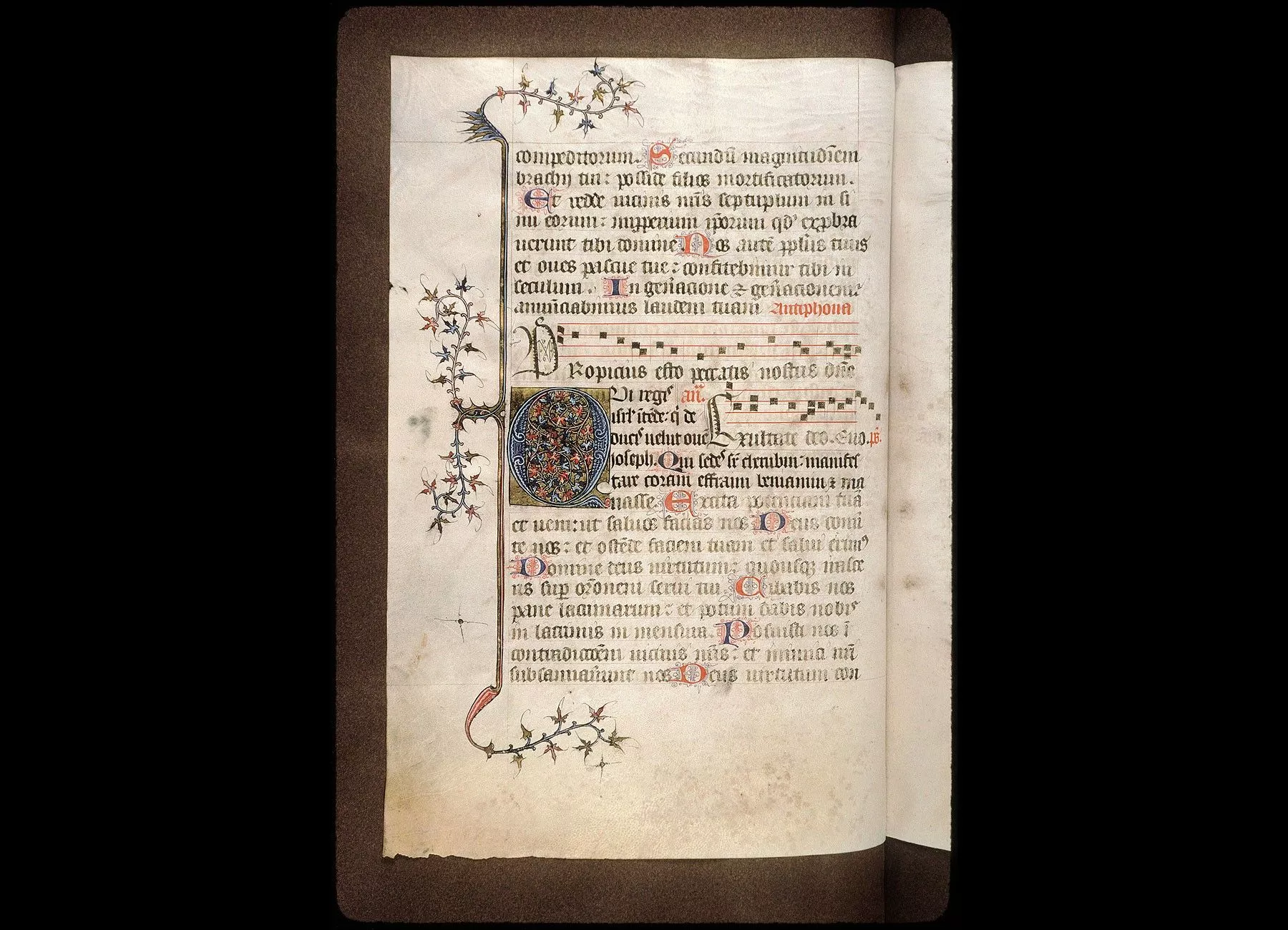 Fol. 13. Psautier divisé selon les heures canoniales, avec l'indication du commencement des antiennes notées