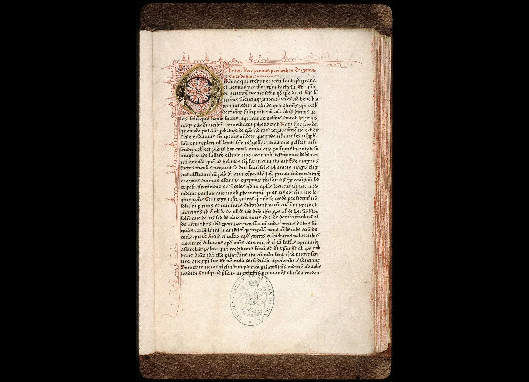 Fol. 5 v°. Vie de St Antoine, ermite, par St Athanase, patriarche d'Alexandrie, traduite par Évagre, prêtre, puis évêque d'Antioche. " Incipit vita sancti Anthonii, monachi et heremite, primum in greco scripta ab Athanasio, episcopo Alexandrino, translata in latino ab Evagrio presbitero, utilis ad monachos et necessaria satis ad instructionem virtutum et informationem sancte regule. Incipit prologus Evagrii presbiteri ad Innocentium. Presbiter Evagrius Innocentio... Athanasius, episcopus, a [d] peregrinos fratres. Optimum, fratres, est... "