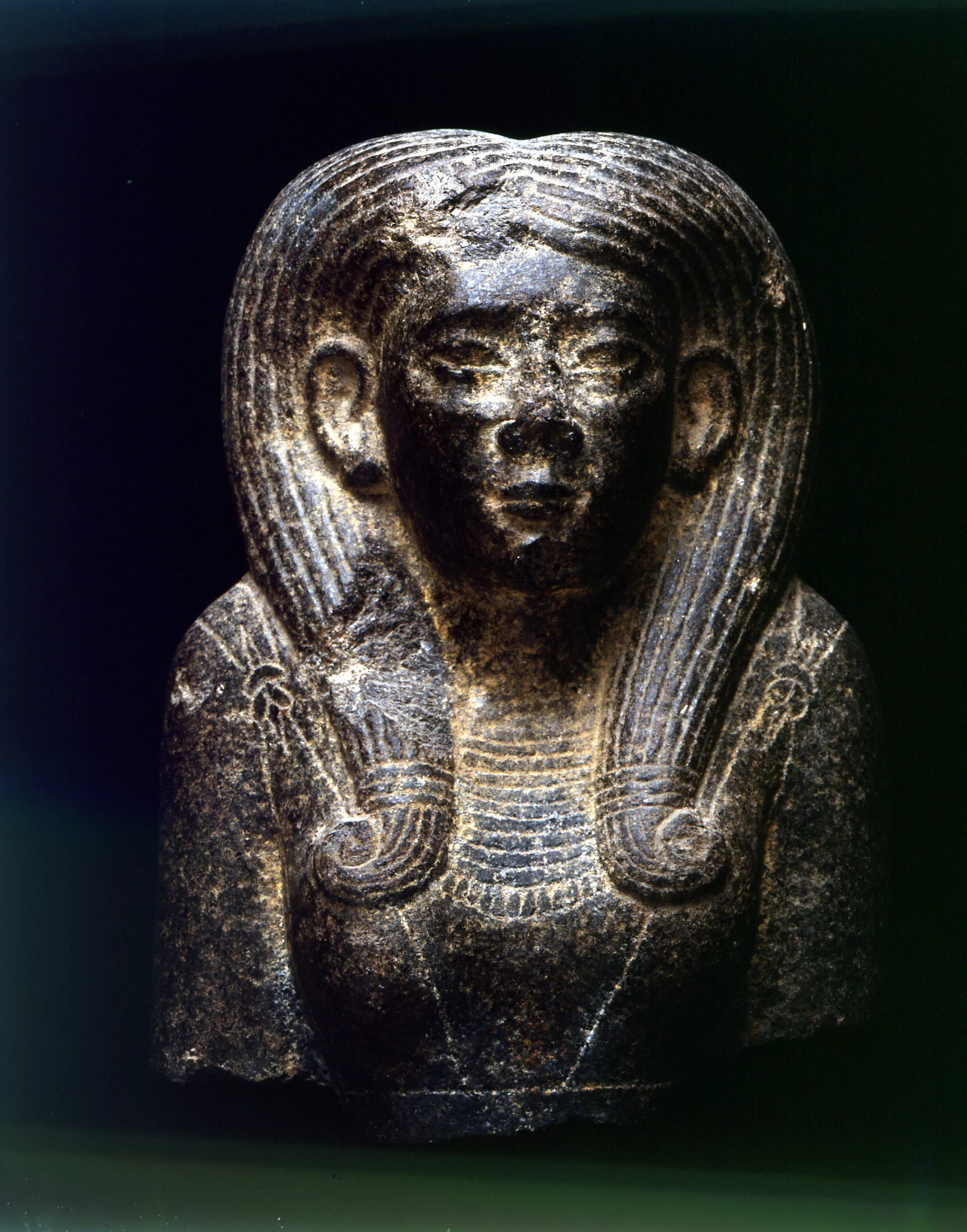 A en croire les traits particulièrement réalistes de cette oeuvre qui s'écarte des représentations caricaturales de l'époque thinite, mais aussi de celles, plus nombreuses, du Moyen Empire, I'Ancien Empire, connu pour sa belle école animalière, doit être évoqué, et particulièrement la Ve Dynastie qui fournit des tableaux saisissants de vie comme dans la "Chambre des Saisons". On peut suggérer, comme lieu de provenance, un temple funéraire ou divin où ce simulacre perpétuait le massacre rituel, par le roi, de cet animal.