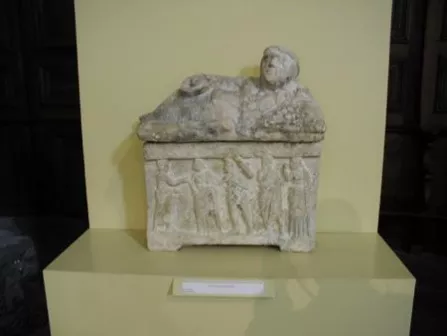 /sites/default/files/images_oeuvres/2023-03/4240urnesceneadieu.jpg Objets funéraires étrusquesAntiquités étrusquesArchéologie Urne avec scène d'adieu en présence de Charun, démon étrusque de la mort Présentation de l'œuvre Lieu de fouilleChiusiRégionVolterra (Etrurie)Données spécifiques Musée d'accueilMusée Lapidaire À découvrir aussi . Urne aux dauphins . Urne funéraire étrusque d'albâtre représentant deux dauphins affrontés de part et d'autre d'une plante marine . Urne funéraire . Plaque en pierre X