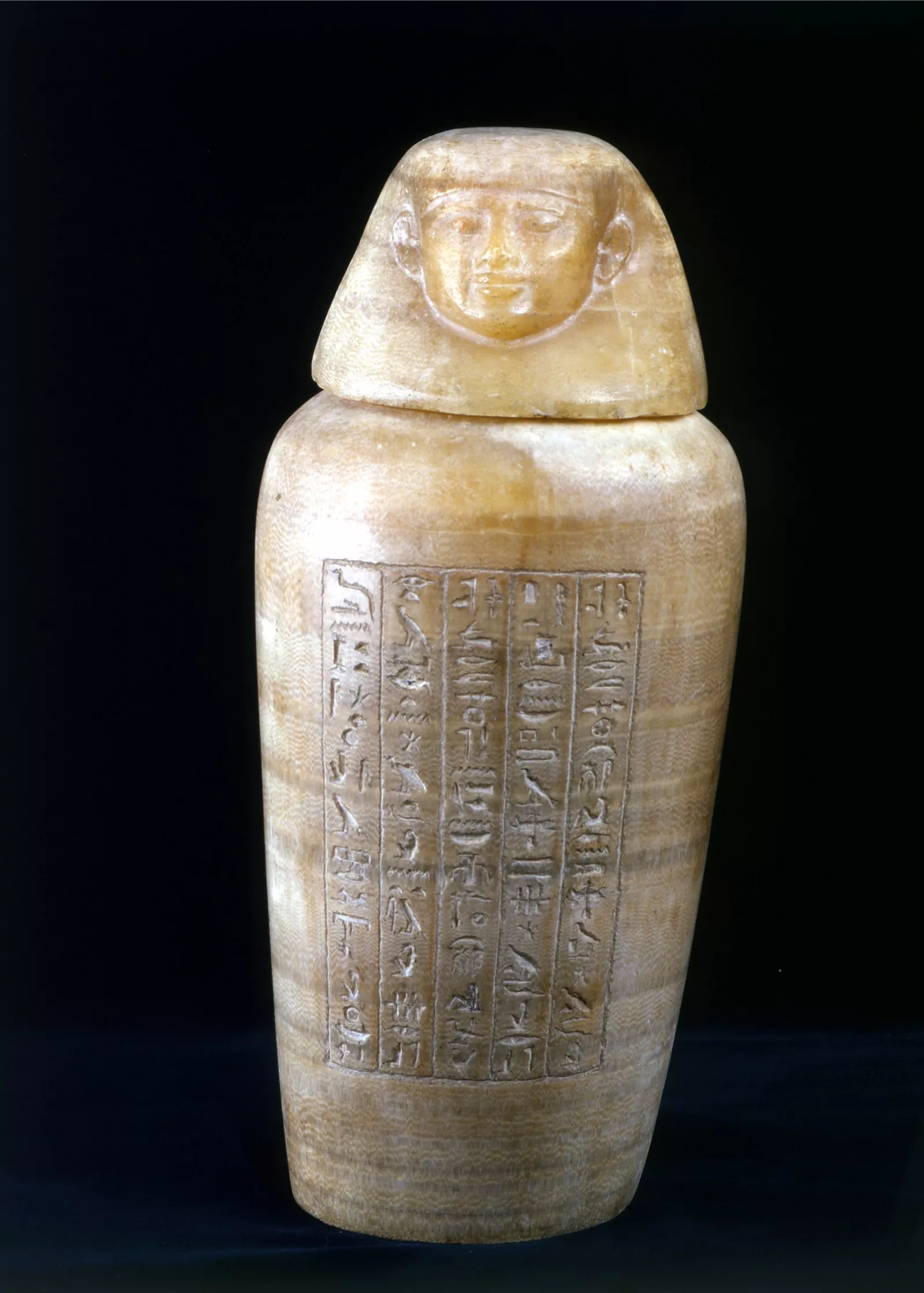 Vase canope au nom de Iahmès à tête d’Amet (tête humaine)