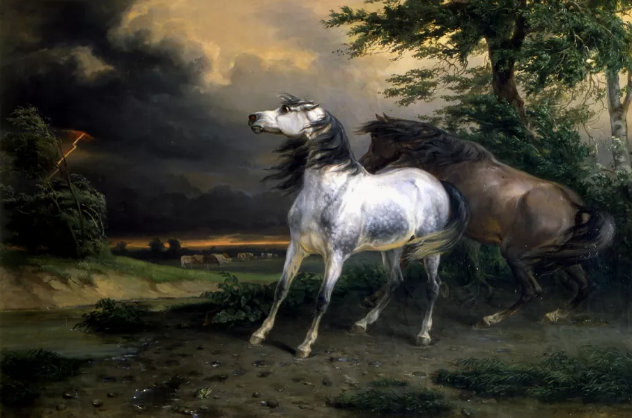 Chevaux effrayés par l’orage