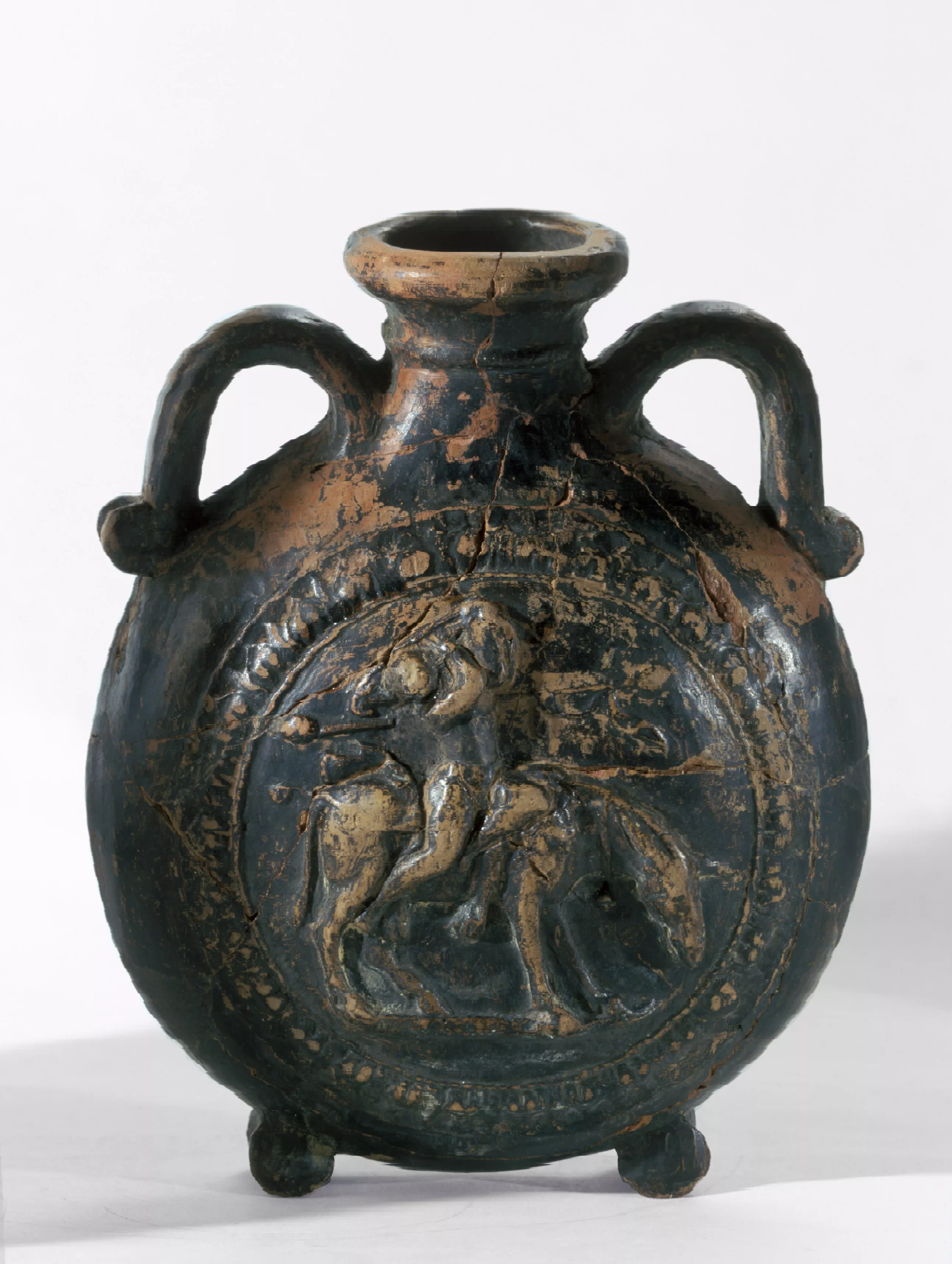 « Gourde » à vernis noir, à décor moulé en relief